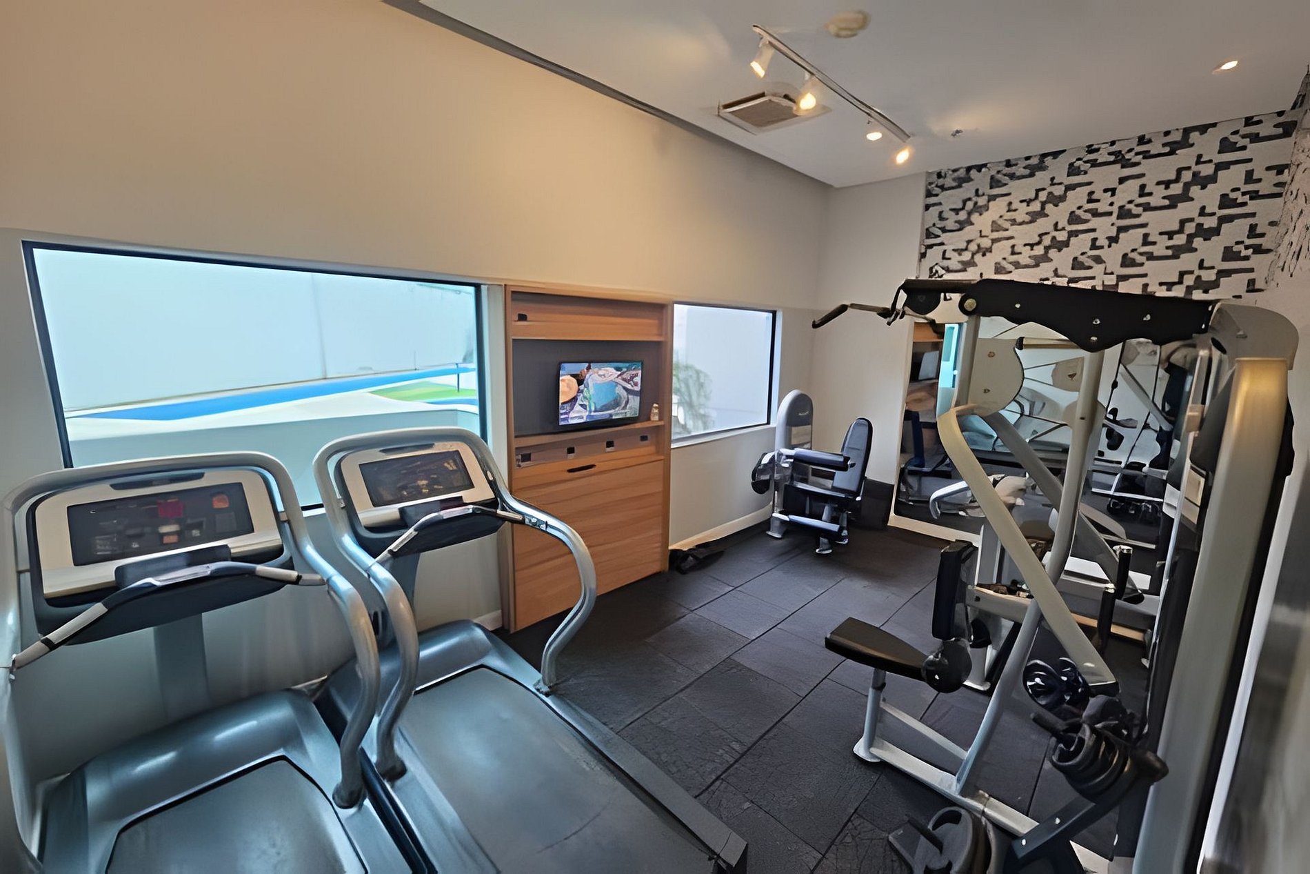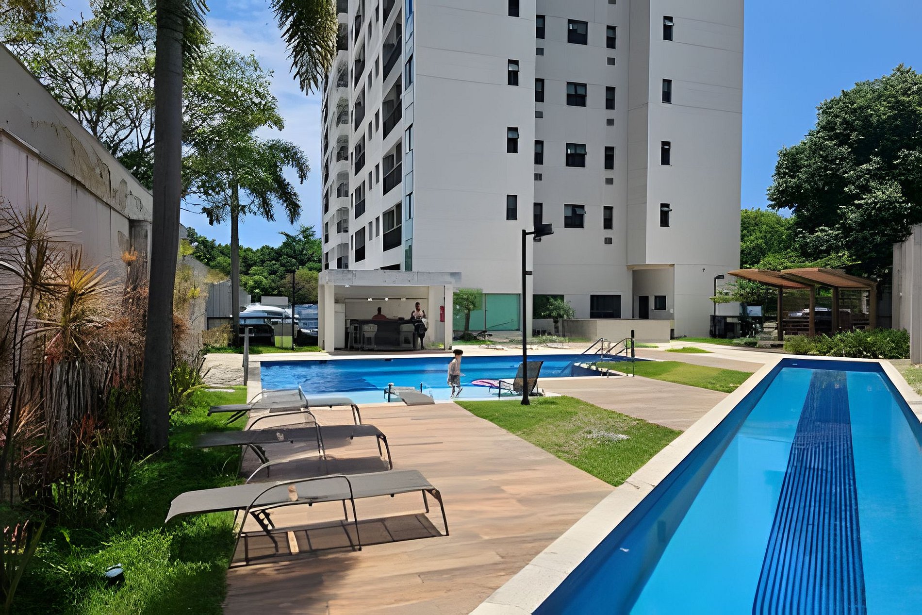 Hospedes podem acessar piscina das 10:00 as 18:00. academia da 6:00 as 24:00. Possuímos lavanderia de auto serviço no subsolo. Custo de 15,00 máquinas de lavar e 15,00 máquinas de secar. Temos um mercadinho de auto servico com itens básicos .